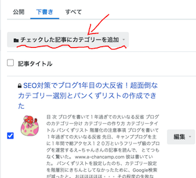 いや、普通はね、すべてのカテゴリーを並列するなんて間抜けは私くらいなもので、ある程度、きちんとカテゴリーを作っていれば、管理画面のカテゴリーから一括で編集が可能です。